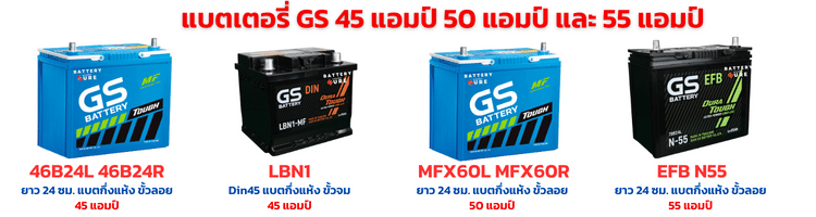 แบตเตอรี่ GS 45 แอมป์ 50 แอมป์ และ 55 แอมป์ ราคา เริ่ม 1,700 บาท