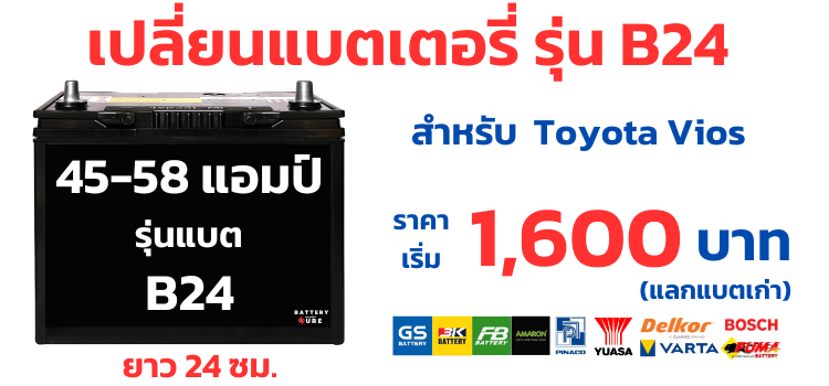 Toyota Vios รุุ่น ปี2008 ถึง ปัจจุบัน ใช้ แบตเตอรี่ขั้วซ้าย รุ่น B24L